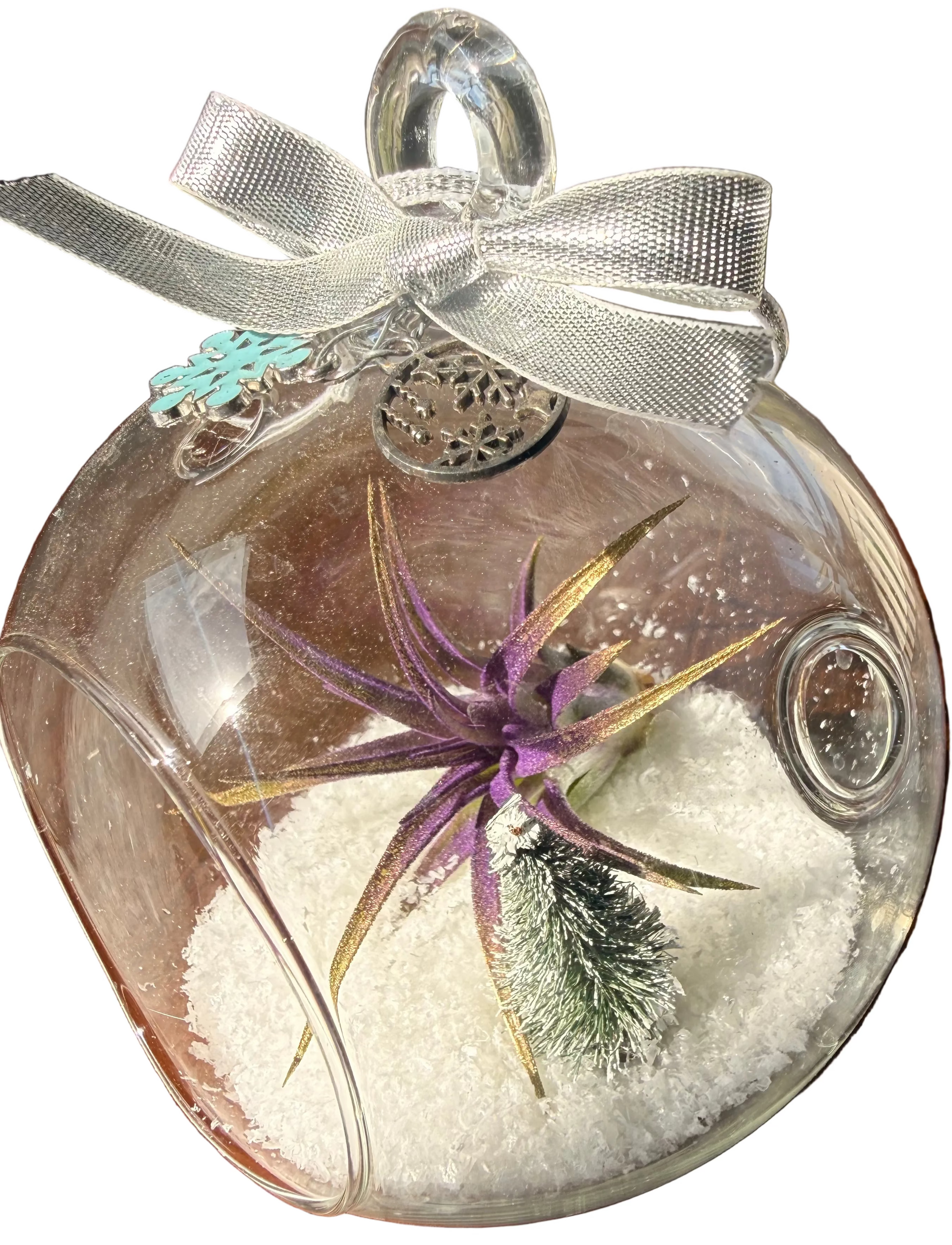 This enchanting ornament blends holiday charm with natural beauty. The Ionantha air plant adds a fresh, living element, while the cozy winter scene brings seasonal whimsy. It’s low-maintenance, long-lasting, and a wonderful way to bring greenery indoors during the winter season. Take the air plant out after Christmas to enjoy and watch it grow all year long!
