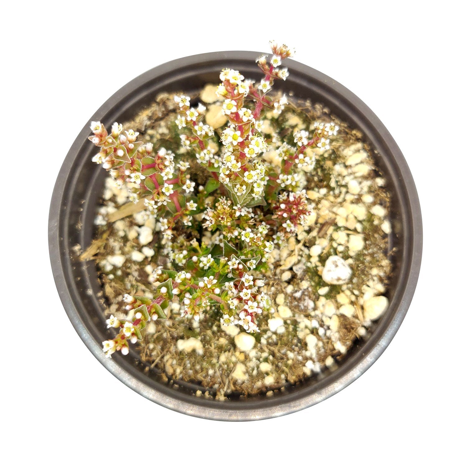 - Crassula Capitella Subsp. Thyrsiflora ‘Pagoda Village’ is a rare succulent that grows tightly stacked triangular leaves, resembling the shape of a pagoda. The branches can grow up to 10 inches long. Unlike Crassula Shark Tooth/ Red Pagoda, Crassula Pagoda Village has leaves that are flatter and grow a bit downward. The foliage has shades of red, purple and green. Crassula Capitella Subsp.